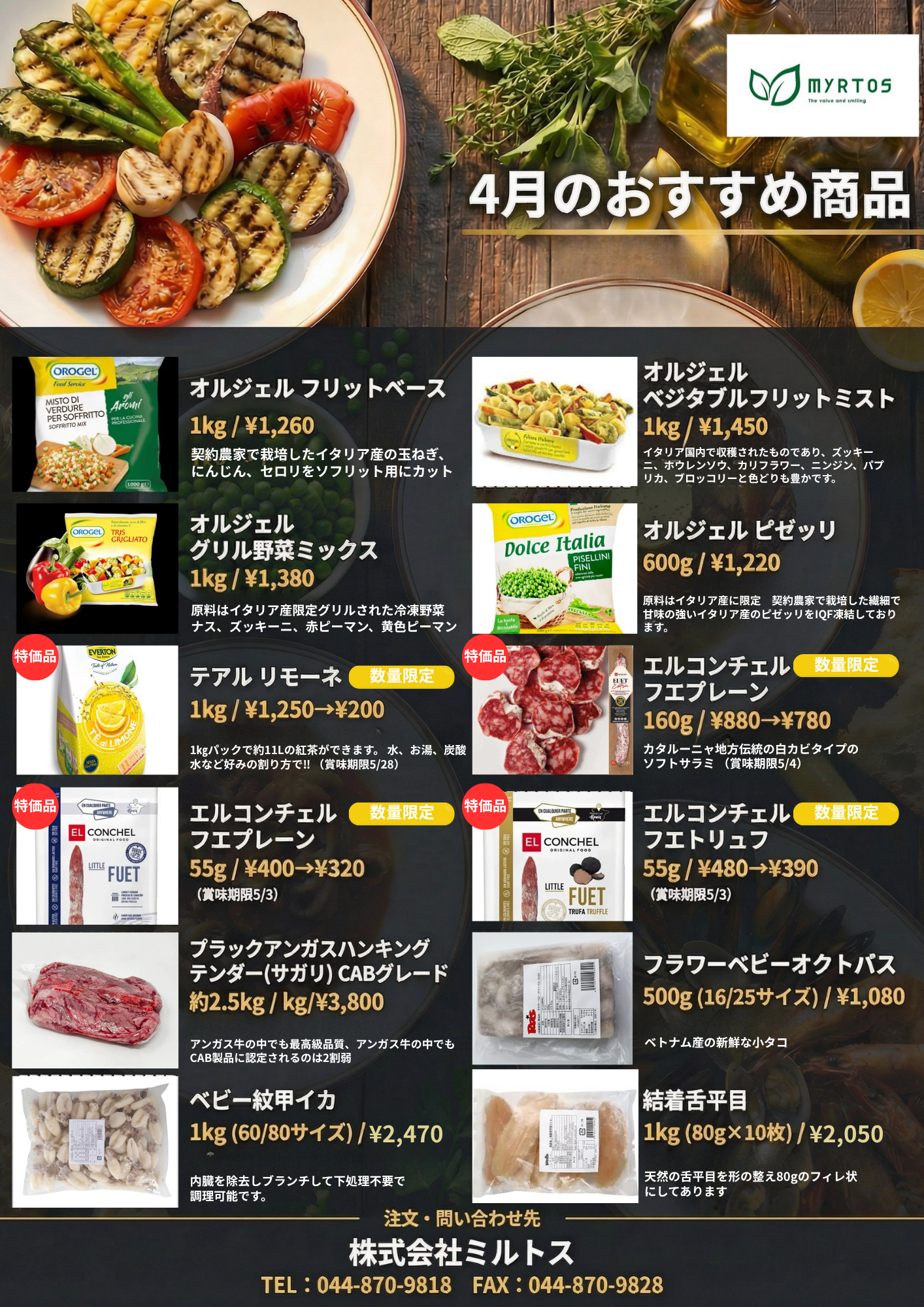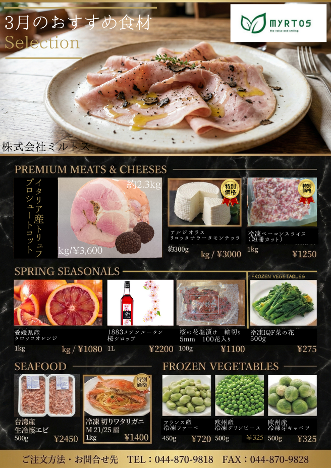 Conceptミルトスの想い 私たちは、イタリア食材を中心に豊富な品揃えを誇る食品流通のプロフェッショナルです。最高品質のチーズ、生ハム、オイル類をはじめ、自社輸入食材から、厳選した国産食材まで幅広く取り揃え、お客様の多様なニーズにお応えします。 生産者の想いを大切に届けるとともに、迅速かつ的確な対応でお客様のビジネスを全力でサポート。スピード感のある対応と的確な提案で、お客様に笑顔とワクワクをお届けすることが私たちの使命です。